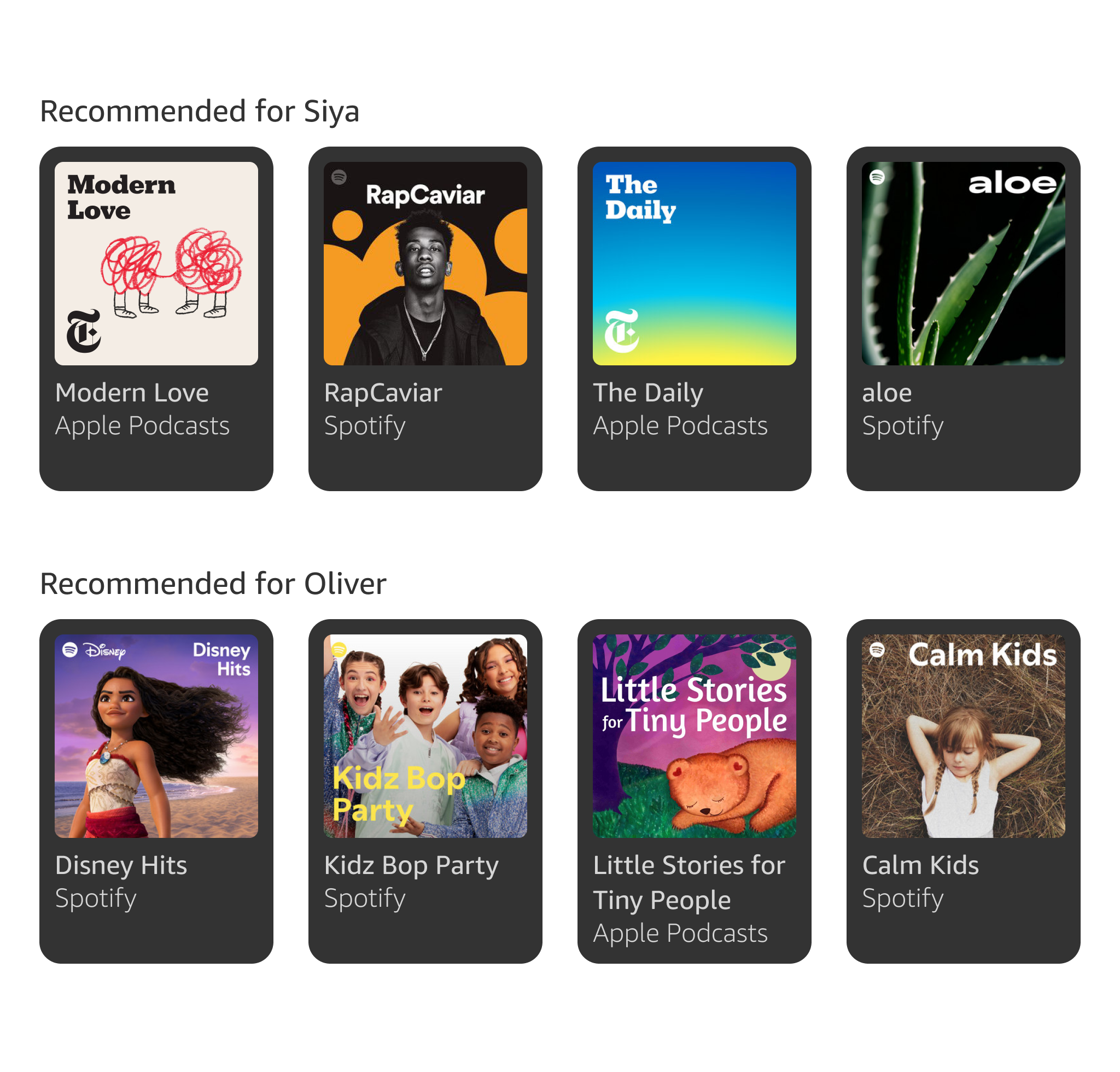 Alexa customizes the content based on presence detection, suggesting its best recommendations for whoever is in the room